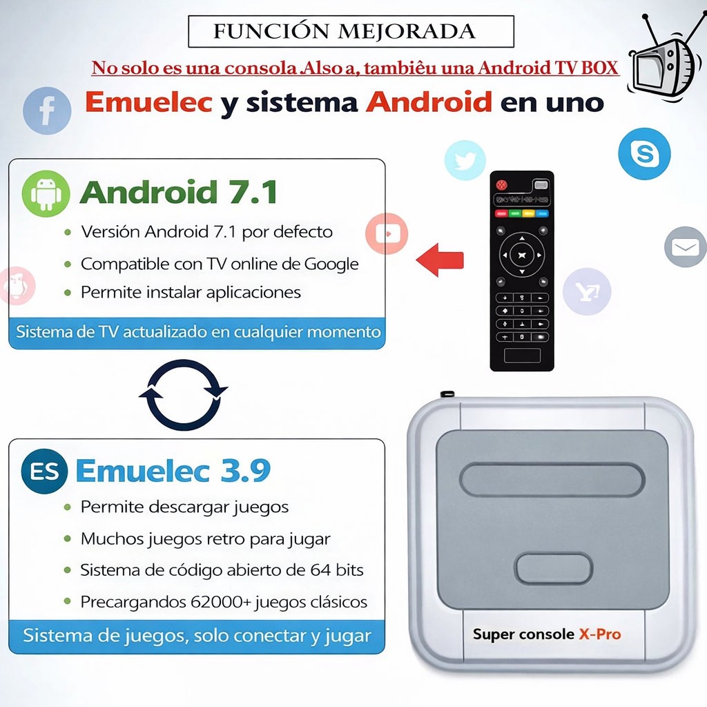 Esta joya retro viene cargada con más de 62.000 títulos clásicos legendarios, ¡una colección inmersiva que te mantendrá explorando por años! Desde los arcades hasta las consolas de tu infancia, todo está aquí. ¡Desbloquea diversión sin fin!